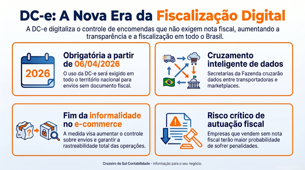 A partir de 06 de abril de 2026, o uso da DC-e passou a ser obrigatório em todo o território nacional para situações em que não há exigência de documento fiscal.